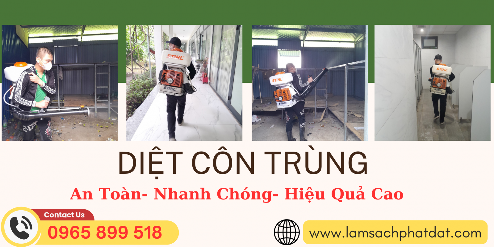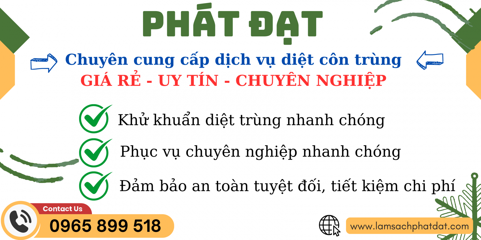 Chỉ cần một cuộc gọi, Phát Đạt sẽ có mặt ngay để đánh giá và đưa ra phương án diệt côn trùng phù hợp nhất. Không gian sống và làm việc của bạn sẽ lại trở nên thông thoáng, sạch sẽ ngay trong thời gian sớm nhất.